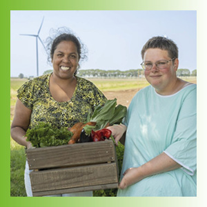 Op Tuinderij de Es worden naast het telen van heerlijke groenten mensen met een zorgvraag begeleid. Ook ben je welkom voor aanschuifmaaltijden, kun je er workshops en cursussen volgen en een keer per jaar kan je er naar het heerlijke Food Festival. Daniëlle en Bart zorgen hier met hun team voor goed eten en een fijne dagbesteding.