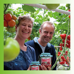 Alfons en Henriëtte van den Hoek van Natuurlijk Tomaat hebben een voedselbos, een biologische kas waar ze verschillende groentes telen en een grote boerderijwinkel. Deze duurzame tomatenexperts telen onder andere cherry tomaten, san marzano’s, cocktail- en roma tomaatjes en trostomaten.