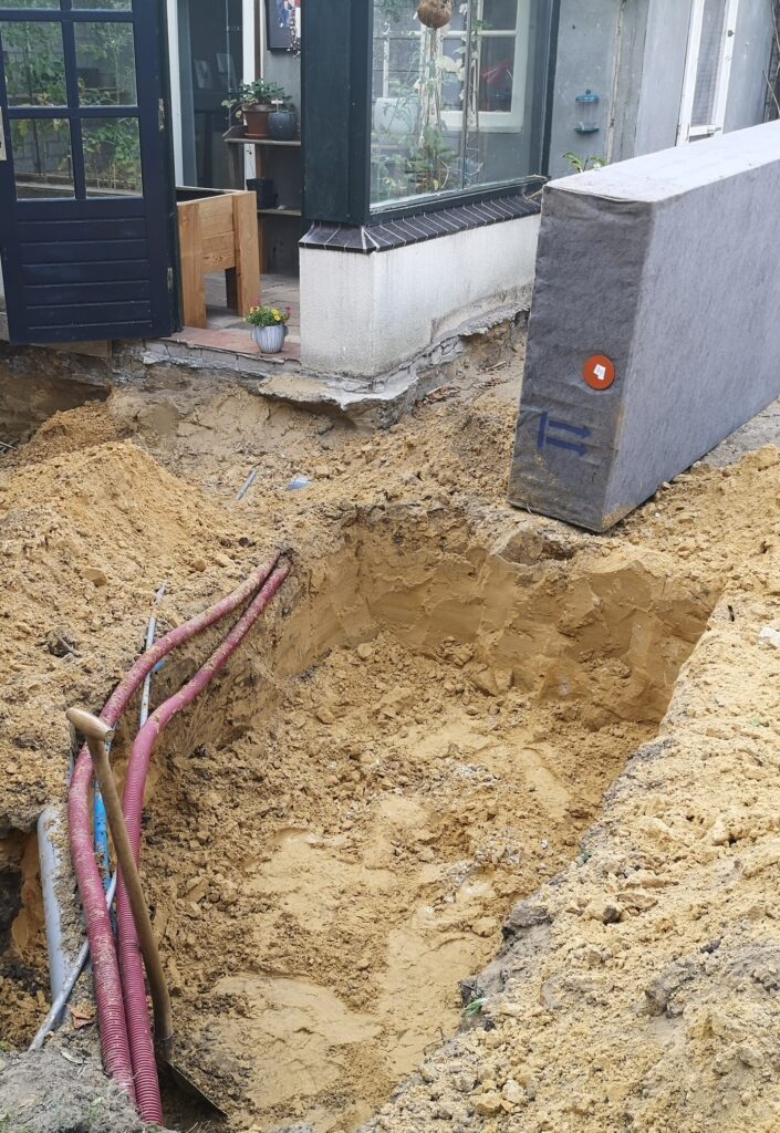 Zo vertelt Hanne: “Zelf heb ik twee regentonnen geplaatst en een infiltratiekrat ingegraven. Een infiltratiekrat is een groot blok bestaande uit opgestapelde lege kratten. De regen die op het dak van ons huis valt, stroomt via de regenpijp een stukje naar beneden en daarna (doordat de regenpijp is losgekoppeld van het riool) het infiltratiekrat in. Het krat kan zich vullen met regenwater, en zorgt ervoor dat het water langzaam de bodem in zakt.”