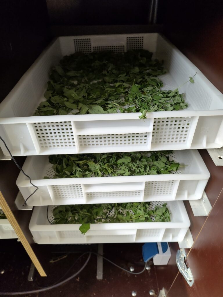 Daarnaast werkt Boslekker met vier boeren in een project samen aan het houdbaar maken van kruiden en vruchten. “Zeker bij de oogst van kleinere hoeveelheden is logistiek een issue. Je wilt oogst vers verwerken maar kunt niet voor elke kilo op en neer rijden. Daarom komt nu bij vier boeren een droger op locatie te staan. De boer oogst dagelijks en doet de oogst met krat en al in een droger. Na het drogen gaat het gedroogde product in een zak en eens per maand haal ik het op. De boeren starten nu met kruiden. Dat zijn gewassen die al in de eerste jaren na aanplant opbrengst geven. Dit kan uitgebreid worden met bessen en andere vruchten als die oogstrijp zijn.”