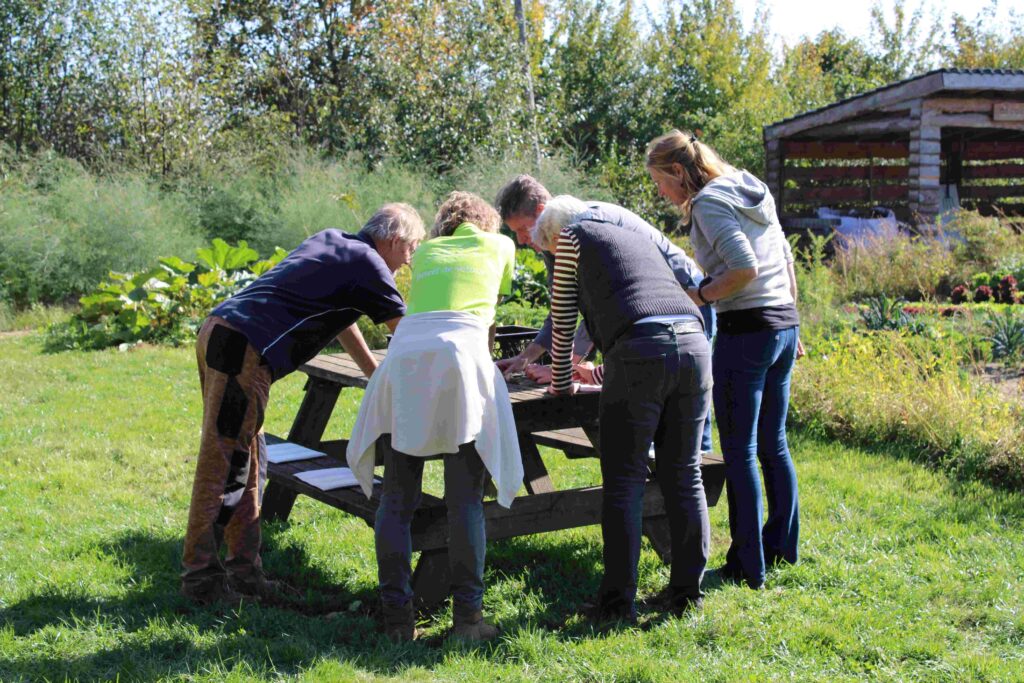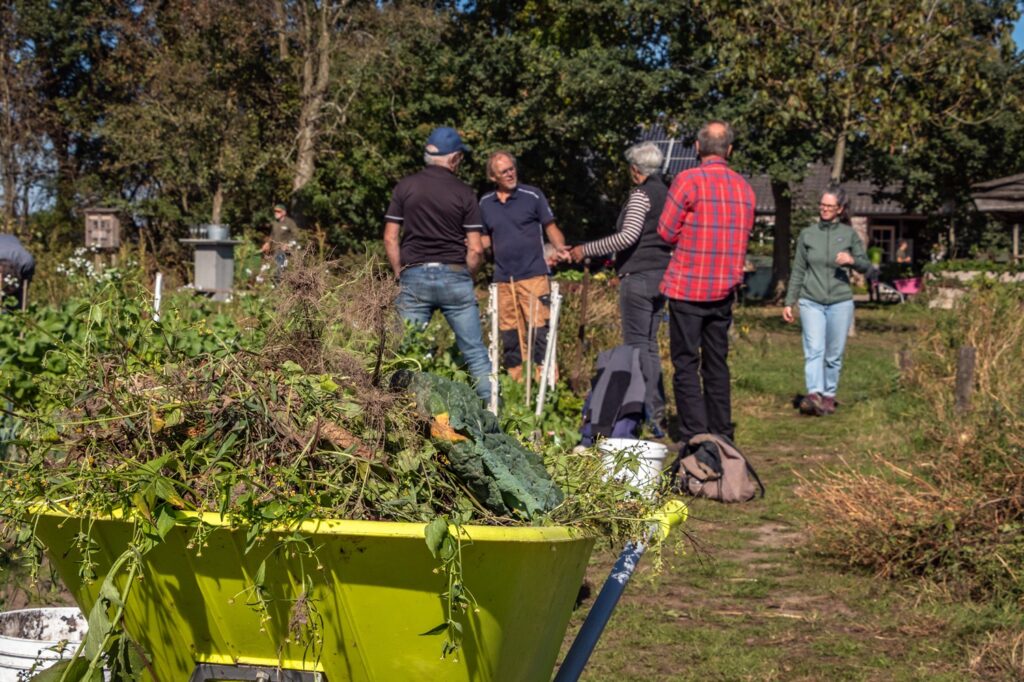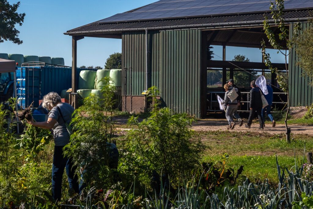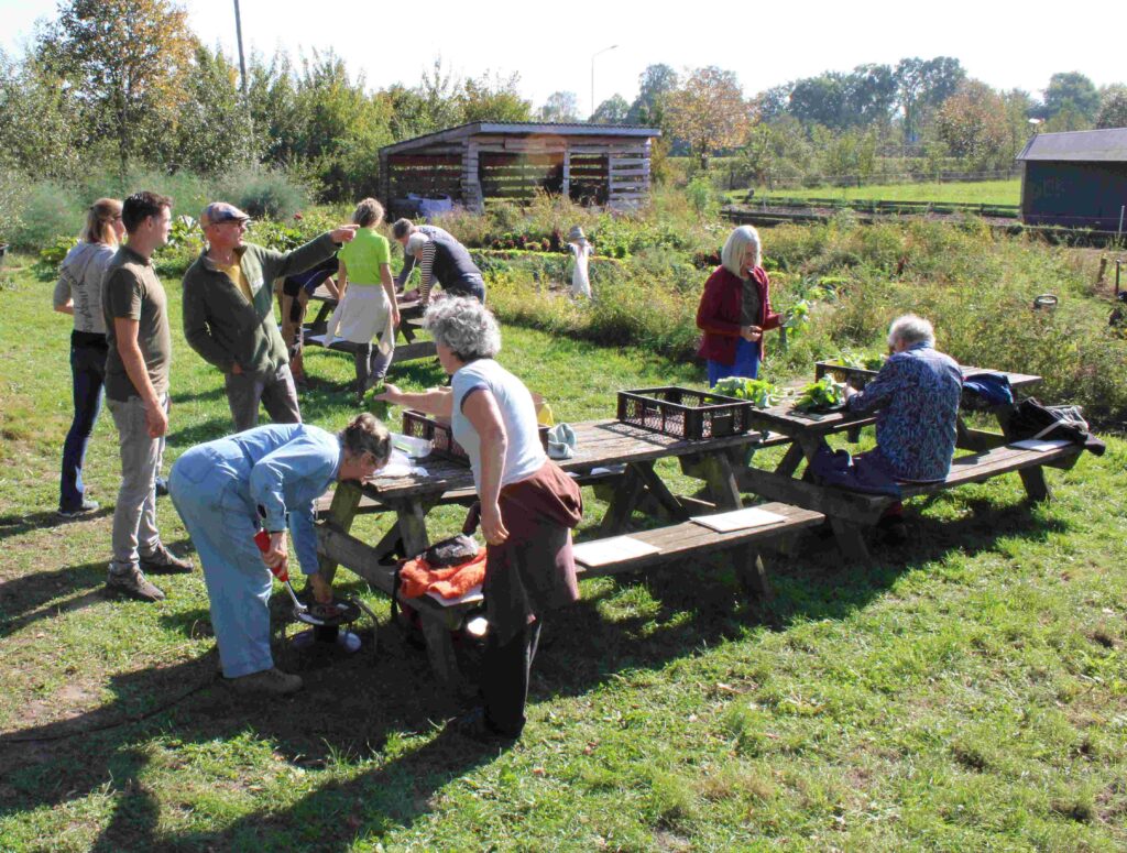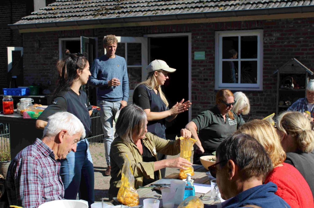 Tijdens een uitgebreide rondleiding liet boer Jan aan buurtgenoten zien wat er allemaal gebeurt op hun biologische boerderij. Vervolgens ging iedereen aan de slag. Deelnemers konden kiezen uit een nuttige natuurklus gecombineerd met een leuke workshop, waaronder koken, bewaartechnieken, bodemgezondheid en natuuronderzoek.