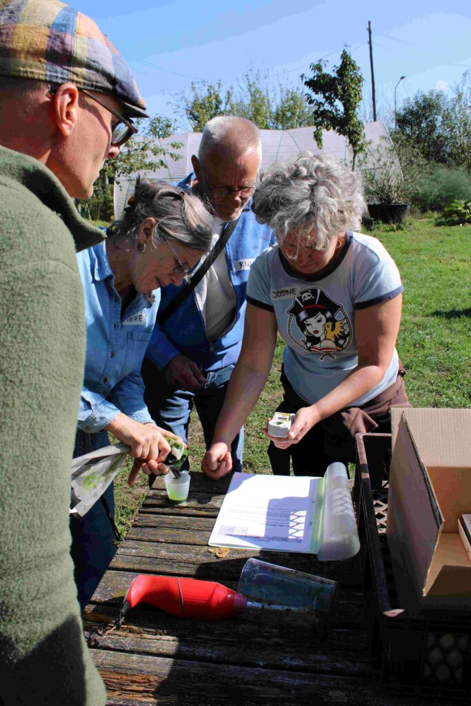 Een andere groep buren ging aan de slag met natuuronderzoek of verdiepte zich in de bodem. Theo Peeters van KNNV en Martin Mol van vereniging Natuur en Milieu Hilvarenbeek lieten zien hoe je met de app ObsIdentify biodiversiteit in kaart kunt brengen. De deelnemers onderzochten op diverse plekken op de boerderij welke planten en dieren er voorkomen. Zo werden, naast veel verschillende kruidensoorten, de bruine graswants en de kleine vuurvlinder gespot. Ook ontdekten buren wat een gezonde bodem inhoudt en hoe je dit kan bevorderen. Nikki Daniëls van De Compostkeuken deelde haar kennis over bodemstructuren en het maken van compostextract.