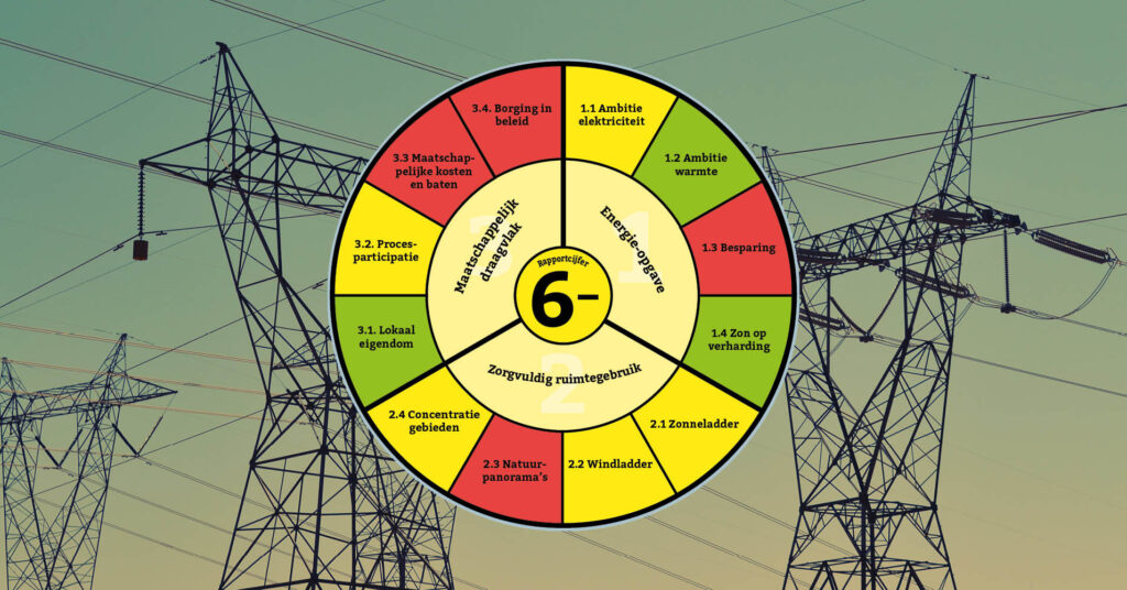 De Concept RES Noordoost Brabant krijgt van de Brabantse Milieufederatie een krappe voldoende met een 6-. Beweeg met de muis over de onderwerpen en ontdek waarom er is gekozen voor een bepaalde kleur. Daarnaast geven we aan wat zeker behouden moet worden, maar ook de belangrijkste punten om aan te werken voor de RES 1.0.