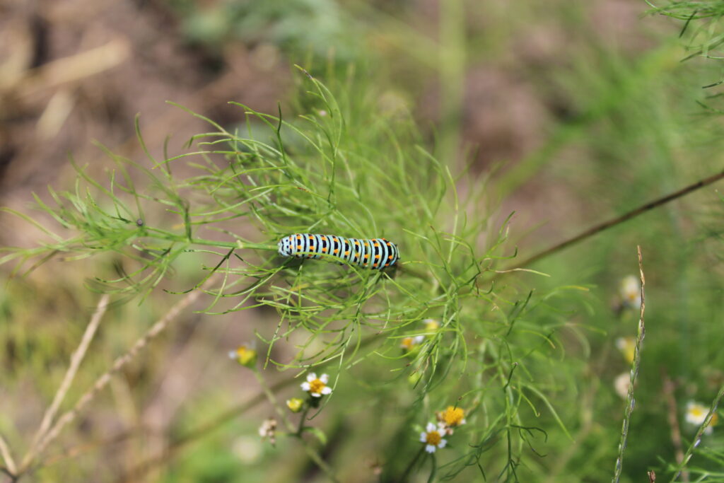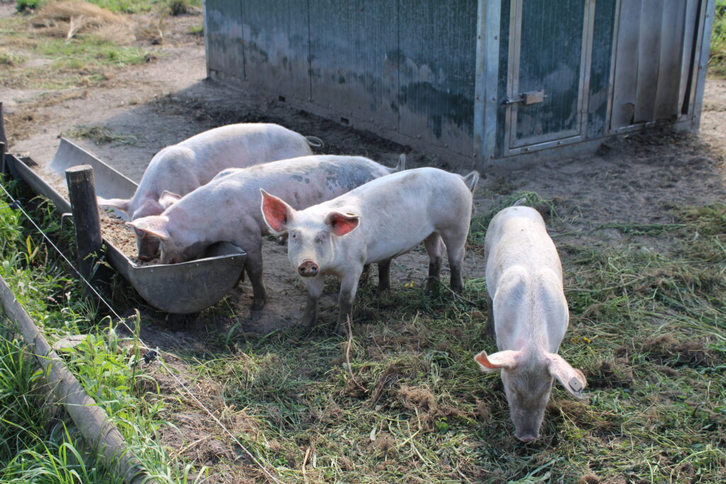 Na de compostkeuken ontdekken we de prachtige rupsen van de koninginnepage op de venkel in de moestuin en maken we kennis met vier varkens. Deze jonge krulstaartjes heeft Jan gekocht van een bevriende biologische varkenshouder. De varkens zorgen ervoor dat er niets verspild wordt op de boerderij.