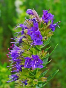 (Hyssopus officinalis) is een aromatische vaste plant die niet zo hoog wordt (20-60 cm). Hij geeft blauwe bloemetjes. De blaadjes kun je gebruiken als kruiden in hartige en zoete gerechten. Je kunt er ook thee van maken. Maar let op: Hyssop is wel iets gevoeliger voor natte koude winters.
