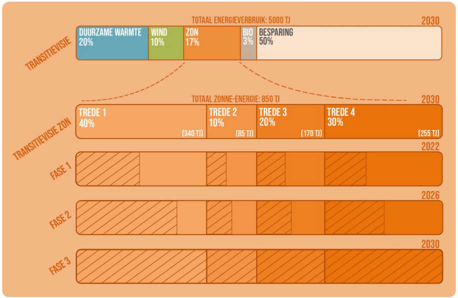 Stap 1: Wat is de opgave en de einddoelstelling? Maak inzichtelijk hoeveel zonne-energie er nodig en mogelijk is. Op welke energiemixen zet je als gemeente in (zon, wind, warmte etc.)?