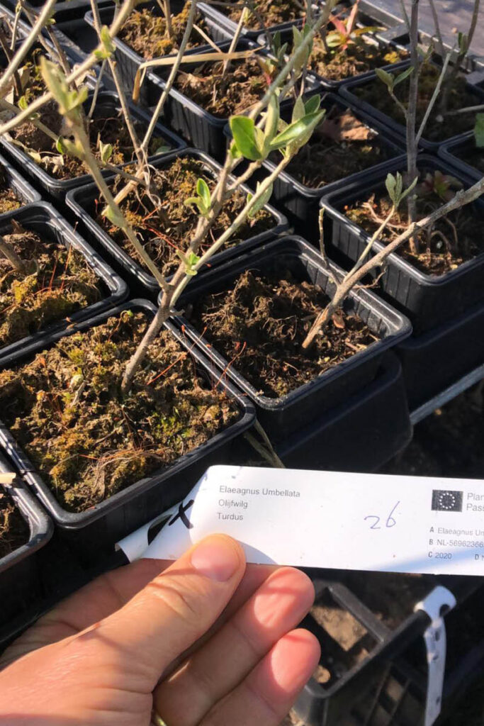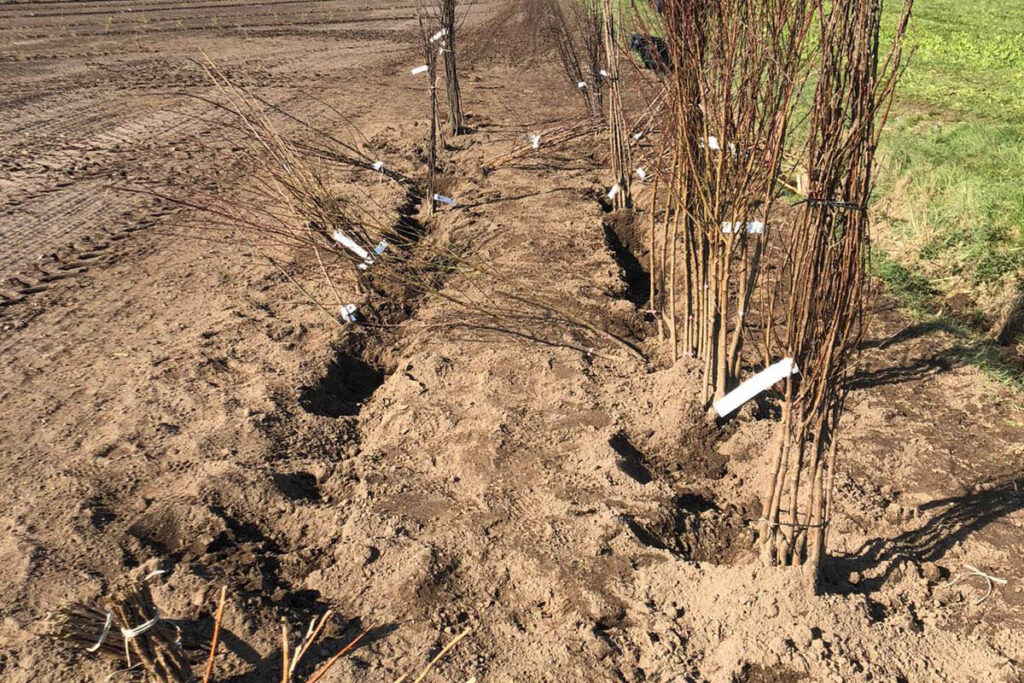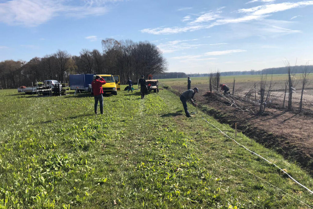In elke rij staan uitgekiend diverse soorten bomen zoals appel, pruim, noot, tamme kastanje, etc. maar ook struiken als honingbes en vlier. Zo ontstaat een zeer gevarieerd pallet aan toekomstige vruchtbomen en -struiken, die in de toekomst eventueel ook machinaal geoogst kunnen worden. Er is tegelijk een watervoorziening via druppelirrigatie aangelegd om de aanplant de hete zomers van tegenwoordig door te helpen.