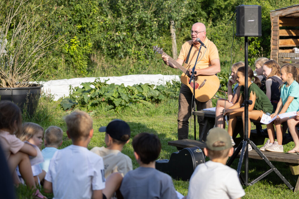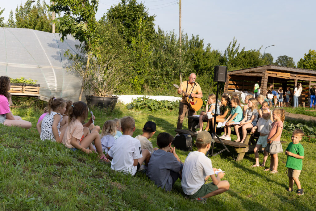 Op donderdagavond stroomde het erf van Bioboerderij ’t Schop in Hilvarenbeek vol met ruim 170 buurtkinderen en hun ouders en grootouders. Tijdens het Moestuinfeest genoten ze van allerlei activiteiten, een muzikaal intermezzo en hapjes voorbereid door de leerlingen zelf tijdens de moestuinlessen van hun school. Al met al een mooie ontwikkeling binnen de Boer&Buur met Natuur-beweging.