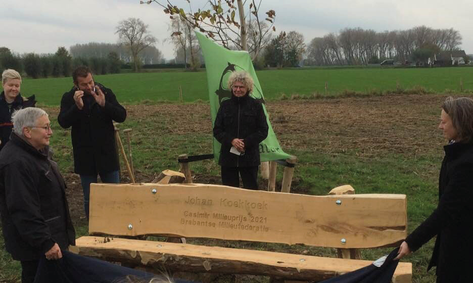 Johan Koekkoek ontving dit voorjaar de Casimir Milieuprijs 2021 voor zijn uitzonderlijke verdiensten voor natuur, milieu en duurzaamheid. De prijs – een robuuste houten buitenbank – werd samen met zijn echtgenote door BMF-directeur Femke Dingemans postuum onthuld aan het eveneens naar hem vernoemde Koekkoekspad nabij Fort Giessen. De plek waar Koekkoek zo graag vertoefde, de plek die hij zelf nog had uitgezocht.