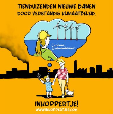 Goed klimaatbeleid en een schone, innovatieve industrie levert Nederland concurrentievoordeel, welvaart en banen op. Het fossiele tijdperk maakt plaats voor een nieuw tijdperk waarin duurzame bedrijven kansen krijgen die banen opleveren. Die kansen moet Nederland dan wel grijpen. Dat maken cartoons die in landelijke dagbladen te zien zijn duidelijk.