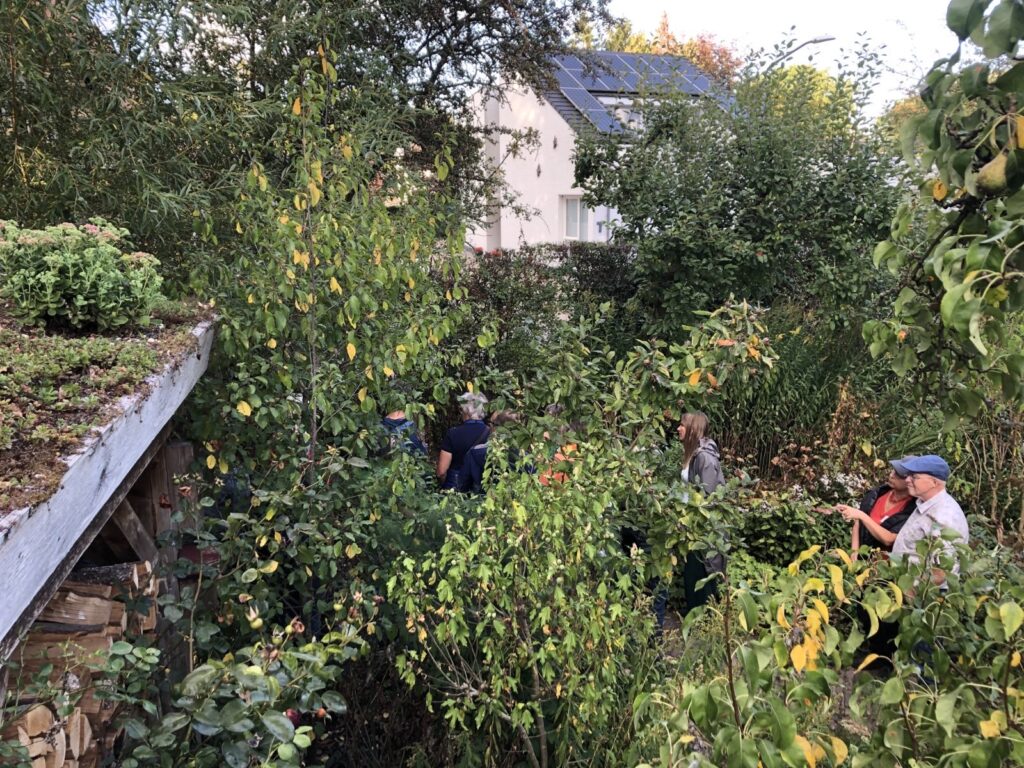 In Oirschot zagen we twee bijzonder biodiverse tuinen met veel aandacht voor wateropvang. In de eerste tuin vielen de waterdoorlatende bestrating en het groene dak op. Daarnaast waren hier veel verschillende regentonnen te zien en was er speciale aandacht voor bloesembogen. Bestuivende insecten zoals bijen vinden hier het hele jaar door iets te eten. De tweede tuin kenmerkte zich door veel afwisseling en biodiversiteit, een bosje, een grote vijver en veel prachtige hoekjes en doorkijkjes.