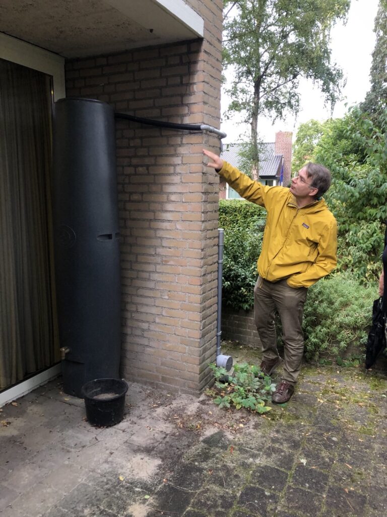 De eerste tuin in Heeze was een inspiratiebron op het gebied van regenwaterafkoppeling. Er werd getoond hoe je de eerste tien liter dakwater na een droge periode weg kunt laten lopen zodat de regenton schoner blijft, en ook werd duidelijk hoe je water in een forse straal (in plaats van een druppelstraaltje) uit je regenton kunt laten lopen. Ook de tweede tuin had een afkoppelsysteem waardoor al het regenwater in de tuin terecht komt, maar hier juist geen regentonnen, maar veel aandacht voor wadi’s. Sproeien bleek in deze tuin nooit nodig.