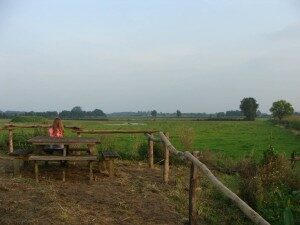 De koeien zijn veelkleurig en veelvlekkig en staan naast een enorme weidevogelpoel van wel 5000 vierkante meter. De wei heeft een heuse oprijlaan (of opweilaan?) aangeplant met Lindes, een lust voor de bijen. Vanaf de picknicktafel tuur je de wei in met de weidevogelpoel.