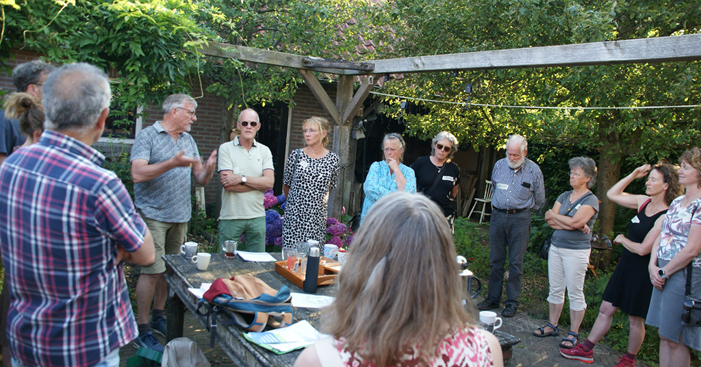 Tuinen die groener zijn en die meer water kunnen opnemen zijn beter bestand tegen klimaatverandering. Hoe pak je dat aan? Zo’n 17 belangstellenden lieten zich op 25 juni in Den Dungen (gemeente Sint Michielsgestel) inspireren om zelf in hun tuin aan de slag te gaan met waterinfiltratie en biodiversiteit. Het tuinbezoek werd georganiseerd vanuit het project Inwoners aan Zet van onder andere de Brabantse Milieufederatie, en het buurtinitiatief Met elkaar voor Mekaar (MevM). Twee huizen stelden hun tuinen open en lieten zien welke maatregelen voor een klimaatbestendige tuin ze hadden genomen.