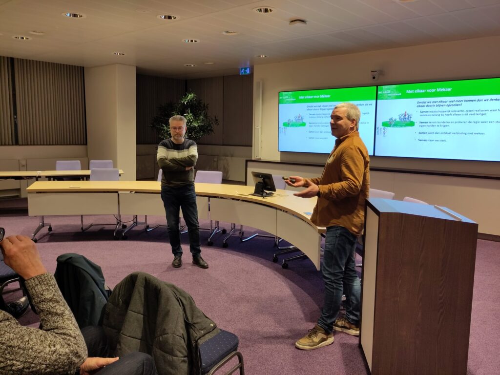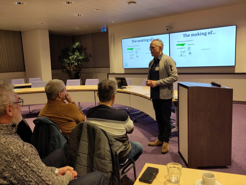 Projectleider John Vermeer gaf uitleg over de mogelijkheden die het project biedt voor de lokale natuur- en milieuorganisaties. Wil je ook met je buurt werken aan wateropvang en biodiversiteit? Heb je vragen voor het Servicepunt Klimaatadaptatie, wil je een webinar volgen, Tuiny Forest of Tuiny Poel aanleggen, gebruik maken van een tuincoach of van een Groene Doos, of meedoen aan een blauwgroene meetcampagne? Dat kan! Belangrijk element voor succes daarbij: de samenwerking tussen de groep met de gemeente.