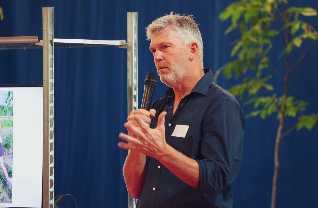 Het symposium zoomde in op de praktische zaken rondom agrarische voedselbossen en agroforestry. Tijdens het eerste deel van het programma deelde Ernest de Groot van waterschap Aa en Maas zijn visie op de positieve bijdrage van bomenaanplant: “In een bossensysteem is de bodemstructuur en de bodembiodiversiteit veel beter waardoor die bodem een veel groter infiltratievermogen heeft. Dat is de sleutel tot klimaatadaptatie.”