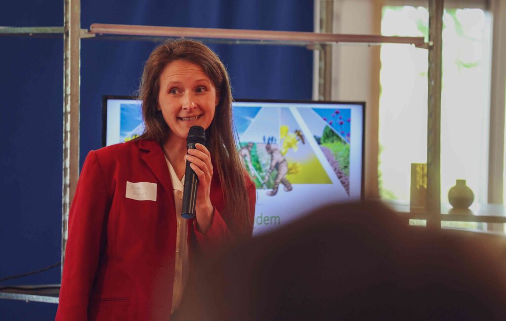 Projectleider Liza Simons lichtte het project Brabants Bodem toe en riep de aanwezigen op: “Ga door met agrarische voedselbossen en heb je ideeën voor andere projecten die een plus opleveren voor zowel het verdienmodel van de boer als landschapsverbetering, meld het dan bij Brabants Bodem.”