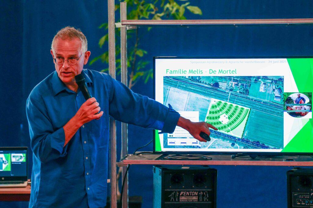 Sjef van Dongen (Agroforestrysupplies) en Evert Prins (Louis Bolk Instituut) lichtten vervolgens hun project AgroforestryBlueprint toe. Binnen dit project worden praktijk en onderzoek met elkaar verbonden op de Experimenteerlocatie in Zeeland (het dorp in Noord-Brabant waar ook het symposium plaatsvond). Samen met agrariërs gaan zij hier praktijkkennis opbouwen op het gebied van agroforestry door te leren en te experimenteren.