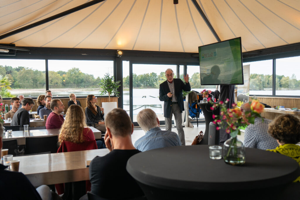 De diverse sprekers die aan het woord waren deelden hun kennis over natuurinclusieve energieprojecten. De dag begon met spreker Bert Branderhorst vanuit Energiecoöperatie LoonopZand. Hij vertelde over de ontwikkeling van het nabijgelegen zonnepark en zijn ervaringen met het natuurinclusief ontwerpen. Ecoloog Friso van der Zee vanuit de WUR sprak uitgebreid over de combinatie van biodiversiteit en zonneparken en de onderzoeken die zij uitvoeren op diverse locaties in Nederland. Vervolgens sprak Jeroen Schmaal vanuit Sunvest over de businesscase van een zonnepark. En vanuit Enexis vertelde Johan van Krieken over de Energietransitie in het ruimtelijk domein. Tot slot deelde Stephan Schron, landschapsarchitect bij Eelerwoude, zijn kennis over de ontwikkeling van natuurinclusieve zonnevelden en innovatieve projecten zoals agri-pv en de combinatie met waterberging.