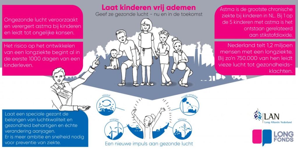 De complete tekst van het manifest en de lijst van ondertekenaars (die continu wordt aangevuld) is te vinden op www.longfonds.nl/geefkinderengezondelucht.