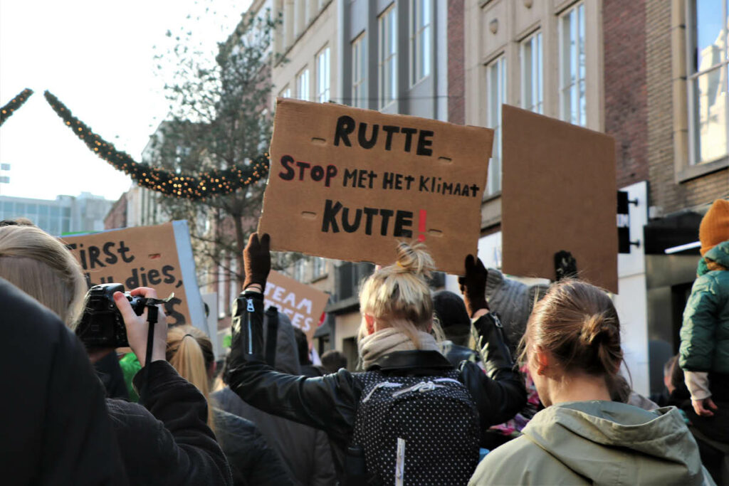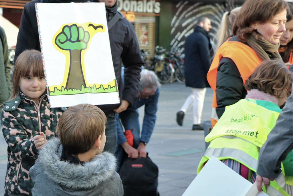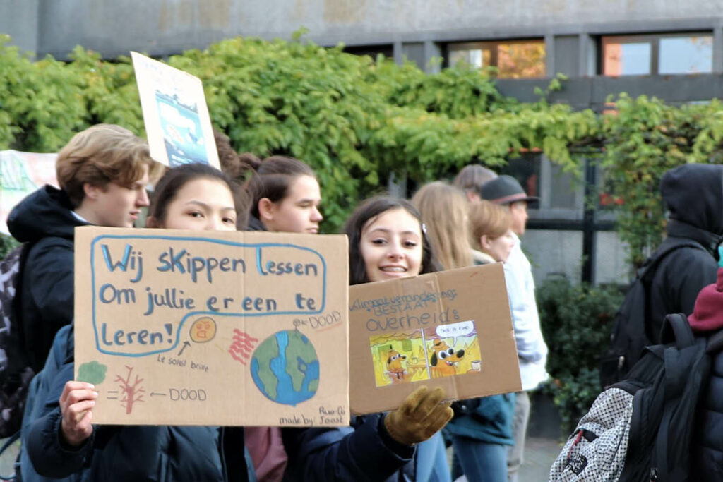 Er waren veel scholieren en kinderen aanwezig om te protesteren. Zij maken zich zorgen over hun toekomst. ‘Wij skippen lessen om jullie er een te leren’, ‘Rutte, stop met het klimaat kutte’, ‘Save trees, not assholes’, ‘Raise your voice, not the sea’. Ze hopen dat er beter geluisterd wordt en dat er nog meer actie wordt ondernomen om het klimaat te redden.