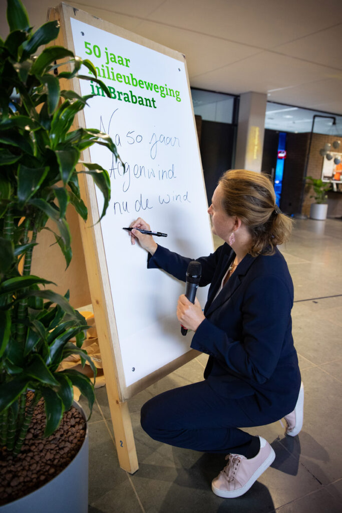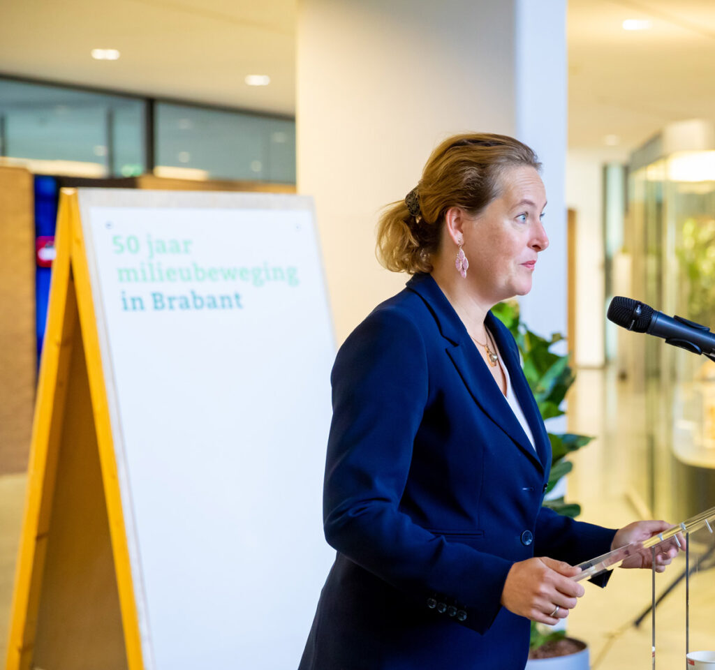 “Dat is de rol die we echt nodig blijven hebben, minstens vijftig jaar, en ik denk dat de tegenwind waarin de milieubeweging vijftig jaar heeft gestaan, wat meer de wind in de rug zal krijgen. […] Ik dank de milieubeweging. Ik dank voor vijftig jaar aan kracht, aan power, aan groene ideeën, aan het op de been brengen van de Brabanders om te zeggen: ‘Het moet stoppen met wat slecht is en hier hebben we ideeën voor wat goed is’. En ik vertrouw erop dat we de komende tijd ook als Brabants Provinciebestuur met jullie ideeën, met jullie energie, aan de slag kunnen.”