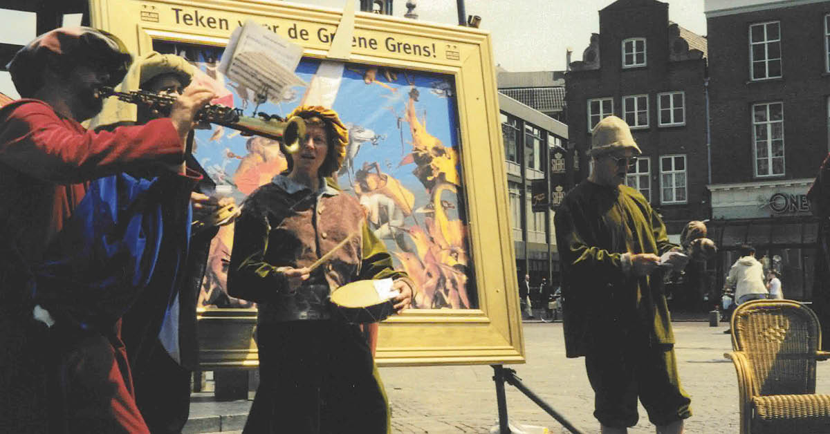 Volgens de milieubeweging is de locatie een cruciale schakel in de ecologische structuur rond Den Bosch. Geheel in Jeroen Bosch-stijl werden omstanders opgeroepen hun handtekening te zetten voor een ‘Groene Grens’.